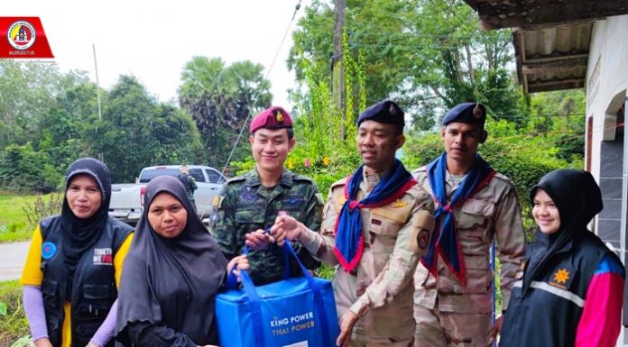 ฉก.สันติสุข มอบถุงยังชีพที่ได้รับจากกลุ่มบริษัทคิงพาวเวอร์ ให้กับประชาชนที่ประสบอุทกภัย