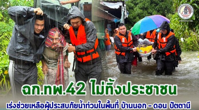 ฉก.ทพ.42 ไม่ทิ้งประชาชน เร่งช่วยเหลือผู้ประสบภัยน้ำท่วมในพื้นที่ บ้านนอก–ดอน ปัตตานี