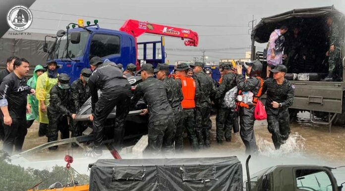 กองทัพภาคที่ 4 ร่วมกับทีมงาน ‘มูลนิธิ กันจอมพลัง ช่วยสู้’ ลำเลียงเจ็ตสกีและเรือเข้าพื้นที่น้ำท่วมหนัก เร่งอพยพประชาชนติดค้างในบ้านหลายจุดของอำเภอหาดใหญ่ และสถานการณ์ยังคงวิกฤตต่อเนื่อง