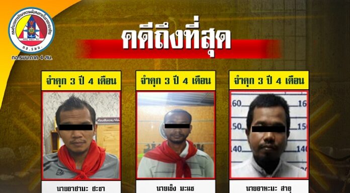 ศาลฎีกายืนโทษจำคุก 3 ปี 4 เดือน สามผู้ต้องหาเกี่ยวข้อง คดีลอบยิงผู้ช่วยผู้ใหญ่บ้านยะรัง ปี 57 พร้อมทิ้งใบปลิวปลุกระดม
