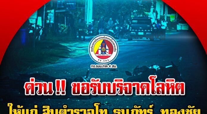 ด่วน ขอรับบริจาคโลหิตให้เแก่ สิบตำรวจโท ธนภัทร์ ทองชัย จากเหตุระเบิดในพื้นที่จังหวัดปัตตานี