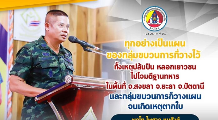 “ ทุกอย่างเป็นแผนของกลุ่มขบวนการที่วางไว้ ทั้งเหตุปล้นปืน หลอกเยาวชน ไปโจมตีฐานทหาร ในพื้นที่ จ.สงขลา จ.ยะลา จ.ปัตตานี และกลุ่มขบวนการก็วางแผนจนเกิดเหตุตากใบ ”