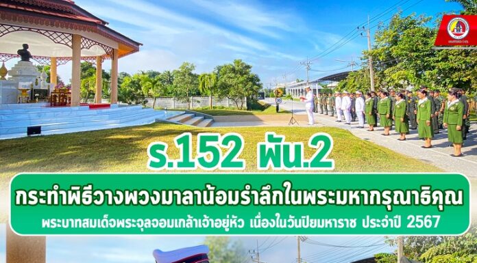 ร.152 พัน.2 กระทำพิธีวางพวงมาลาน้อมรำลึกในพระมหากรุณาธิคุณ พระบาทสมเด็จพระจุลจอมเกล้าเจ้าอยู่หัว เนื่องในวันปิยมหาราช ประจำปี 2567