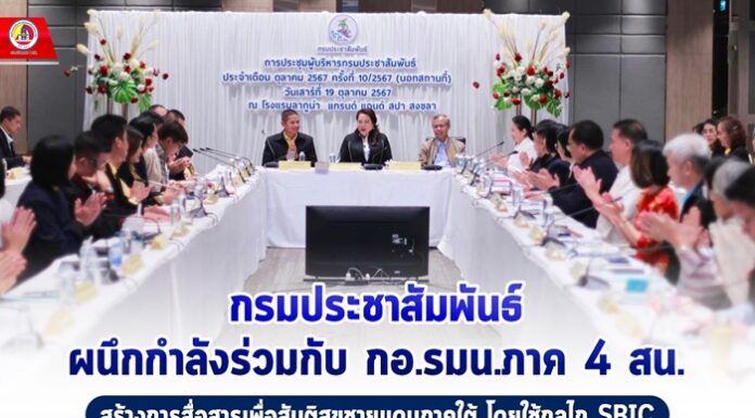 กรมประชาสัมพันธ์ ผนึกกำลังร่วมกับ กอ.รมน.ภาค 4 สน. สร้างการสื่อสารเพื่อสันติสุขชายแดนภาคใต้ โดยใช้กลไก SBIC