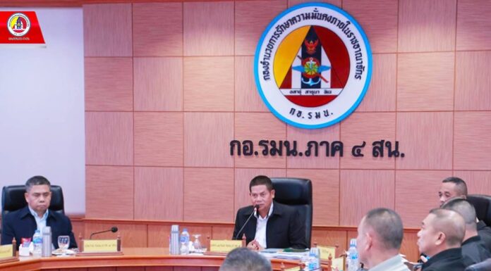 กอ.รมน.ภาค 4 สน. ประชุมหารือแนวทางขับเคลื่อนแผนชีวิต ฮูกุมปากัต (ธรรมนูญหมู่บ้าน 9 ดี) พร้อมให้ผู้นำสี่เสาหลักเดินหน้าสร้างสันติสุขอย่างต่อเนื่อง