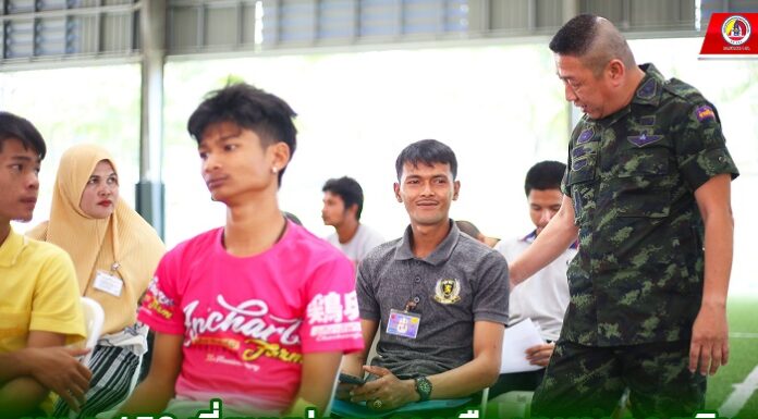 วันนี้ (19 ตุลาคม 2567) เวลา 09.00 น. ที่สนามฟุตซอลนาควานิช ค่ายสิรินธร ตำบลเขาตูม อำเภอยะรัง จังหวัดปัตตานี พันเอก สิทธิศักดิ์ เจนบรรจง ผู้บังคับการกรมทหารราบที่ 152 เยี่ยมให้กำลังใจแก่ผู้ปกครองและเยาวชนผู้สมัครใจเข้าเป็นทหารกองเกินเข้ารับราชการทหารกองประจำการ ประจำปี 2568 โดยวิธีร้องขอ (กรณีพิเศษ) ณ หน่วยฝึกทหารใหม่ กองพันทหารราบที่ 3 กรมทหารราบที่ 152 โดยได้กำชับการปฏิบัติงานของคณะกรรมการตรวจเลือกให้เป็นไปตามนโยบายของกองทัพบกอย่างเคร่งครัด ตลอดจนพบปะ สอบถามปัญหา สร้างขวัญกำลังใจชายไทยที่เข้ารับการตรวจเลือก ซึ่งผู้ที่ผ่านการคัดเลือกในวันนี้ คือ ผลัดที่ 2/67 เพิ่มเติม จะเข้ารายงานตัวยังหน่วยที่ได้เข้าประจำการในวันที่ 1 พฤศจิกายน 2567 นี้