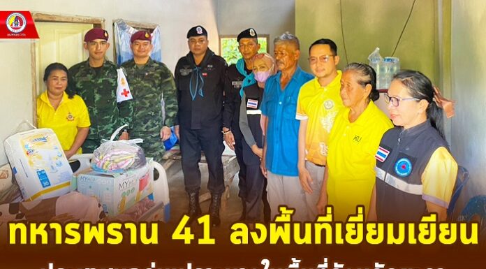 วันที่ 7 ตุลาคม 2561 เวลา 09.00 น. หน่วยเฉพาะกิจกรมทหารพรานที่ 41 จัดกำลังพลกองร้อยทหารพรานที่ 4104 ร่วมกับ เจ้าหน้าที่เทศบาลตำบลเมืองรามัน, ชุดทักษิณสัมพันธ์ที่ 331 ชุดควบคุมที่ 953 หน่วยเฉพาะกิจสันติสุข, ประธานโฆษกชาวบ้านอำเภอรามัน, เจ้าหน้าที่สาธารณสุข และอาสาสมัครสาธารณสุขประจำหมู่บ้าน (อสม.) ลงพื้นที่ในตำบลกายูบอเกาะ อำเภอรามัน จังหวัดยะลา เยี่ยมเยียน นางเฉลิมศรี รักเสมอ ประชาชนกลุ่มเปราะบาง (ผู้ป่วยติดเตียง) พร้อมมอบเตียงนอนผู้ป่วยไฟฟ้า เพื่อช่วยเหลือและบรรเทาความเดือดร้อน