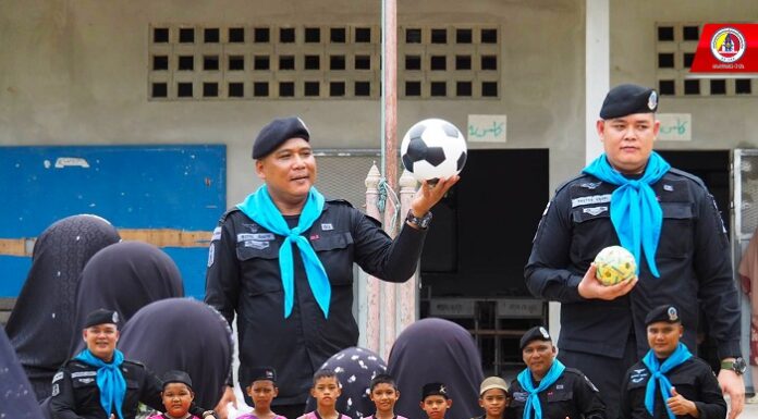วันที่ 7 ตุลาคม 2567 กองร้อยทหารพรานที่ 2206 หน่วยเฉพาะกิจกรมทหารพรานที่ 22 จัดกำลังพลชุดปฏิบัติการกิจการพลเรือน ลงพื้นที่เข้าพบปะพัฒนาสัมพันธ์กับเด็กนักเรียน ศูนย์การศึกษาอิสลามประจำมัสยิดนูรูลอิสลาม ปาฮนตือมูสู (คุ้มต้นตำเสา) หมู่ที่ 5 ตำบลเขาตูม อำเภอยะรัง จังหวัดปัตตานี พร้อมมอบอุปกรณ์กีฬาให้กับเด็กนักเรียน เพื่อใช้ในการฝึกซ้อมให้นักเรียนมีสุขภาพร่างกายแข็งแรงและห่างไกลยาเสพติด ส่งเสริมให้นักเรียนรักการเล่นกีฬา การออกกำลังกาย และใช้เวลาว่างให้เกิดประโยชน์ อีกทั้งยังเป็นการปลูกฝังเยาวชนในเรื่องความรัก ความสามัคคี รู้แพ้ รู้ชนะ รู้อภัย ตามนโยบายการเสริมสร้างภูมิคุ้มกัน เเละสันติสุขในพื้นที่จังหวัดชายแดนใต้