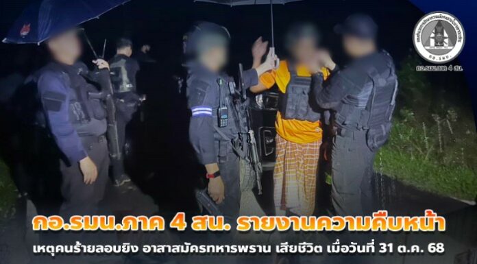 กอ.รมน.ภาค 4 สน.รายงานความคืบหน้า เหตุคนร้ายลอบยิง อาสาสมัครทหารพราน เสียชีวิต เมื่อวันที่ 31 ต.ค. 68