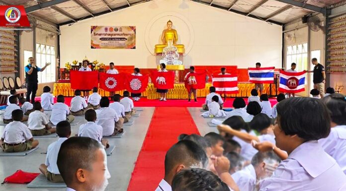 ฉก.สันติสุข ร่วมดำเนินกิจกรรมค่ายเด็กดีมีศีลธรรมบ้านร่มเย็น ณ โรงเรียนเทศบาล ๕ (วัดประชาภิรมย์) อ.เมือง จ.นราธิวาส