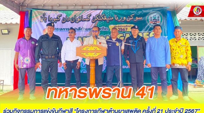 ทหารพราน 41 ร่วมกิจกรรมการแข่งขันกีฬาสี “โครงการกีฬาต้านยาเสพติด ครั้งที่ 21 ประจำปี 2567” ณ โรงเรียนพัฒนาวิทยากร อ.รามัน จ.ยะลา