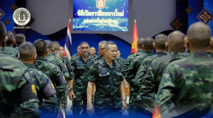 วันที่ 19 พฤศจิกายน 2568 เวลา 09.00 น. ณ สโมสรรื่นฤดี ค่ายวชิราวุธ อำเภอเมือง จ.นครศรีธรรมราช พลโท นรธิป โพยนอก แม่ทัพภาคที่ 4 /ผู้อำนวยการรักษาความมั่นคงภายในภาค4 เป็นประธานในพิธีเปิดการฝึกทหารใหม่ ประจำปี 2568 ผลัดที่ 2 ของหน่วยฝึกภายในค่ายวชิราวุธ โดยมีผู้บังคับบัญชาทุกระดับชั้นร่วมให้การต้อนรับอย่างพร้อมเพรียง