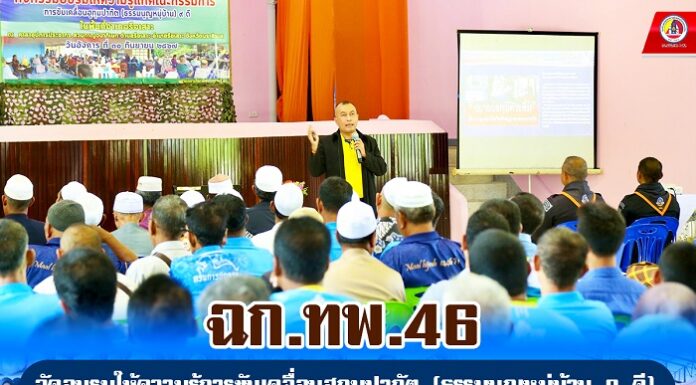 ฉก.ทพ.46 จัดอบรมให้ความรู้การขับเคลื่อนฮูกุมปากัต (ธรรมนูญหมู่บ้าน 9 ดี) เสริมสร้างชุมชนที่เข้มแข็ง สู่ความสันติสุขที่ยั่งยืน