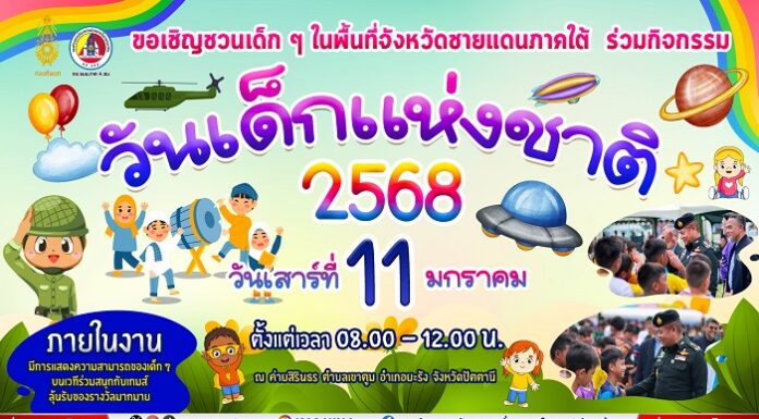 วันเด็กแห่งชาติ 2568 ในพื้นที่จังหวัดชายแดนภาคใต้ที่ไหนมีกิจกรรมอะไรที่น่าสนใจ ปักหมุดไว้เลยกับกิจกรรม-ของขวัญมากมาย