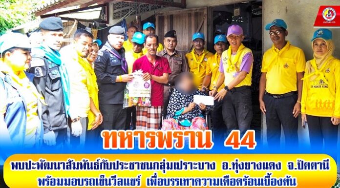 ทหารพราน 44 พบปะพัฒนาสัมพันธ์กับประชาชนกลุ่มเปราะบาง อ.ทุ่งยางแดง จ.ปัตตานี พร้อมมอบรถเข็นวีลแชร์ เพื่อบรรเทาความเดือดร้อนเบื้องต้น