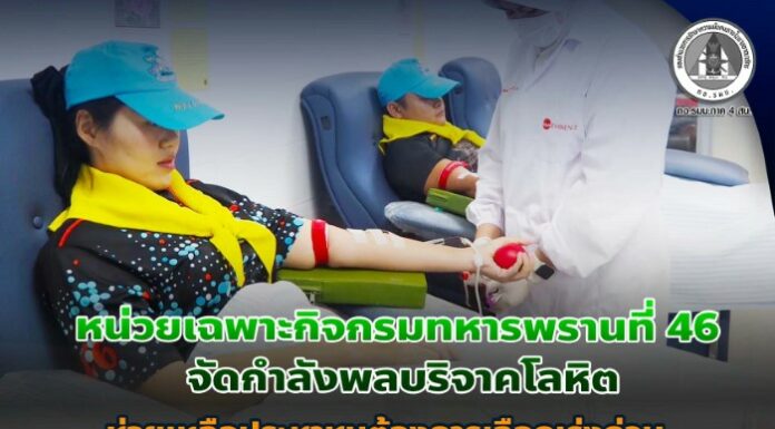 วันที่ 16 พฤศจิกายน 2568 เวลา 14:00 น. พันเอก นพดล พรหมมาก ผู้บังคับหน่วยเฉพาะกิจกรมทหารพรานที่ 46 มอบหมายให้ ร้อยโท สุชาติ โชติรัตน์ ผู้ช่วยหัวหน้าฝ่ายกิจการพลเรือนพร้อมด้วยจิตอาสาพระราชทานของหน่วย ร่วมบริจาคโลหิต ให้กับ นางรอกีเยาะห์ มามะสะปง อยู่บ้านเลขที่ 40/1 หมู่ที่ 8 ตำบลเรียง อำเภอรือเสาะ จังหวัดนราธิวาส ซึ่งป่วยเป็นเนื้องอกบริเวณลำไส้ ต้องเข้ารับการผ่าตัดด่วน ทางหน่วยฯจึงได้จัดกำลังพลบริจาคโลหิต ณ ธนาคารเลือด โรงพยาบาลศูนย์ยะลา ชั้น 5 อาคารตึก 7 โดยมียอดผู้ร่วมบริจาคโลหิต จำนวน 4 ราย ได้ปริมาณโลหิต จำนวน 1,800 มิลลิลิตร