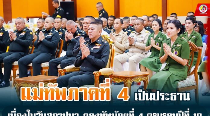 โดยในช่วงเช้า พลโท ปราโมทย์ พรหมอินทร์ แม่ทัพน้อยที่ 4 ได้เข้าสักการะพระบรมราชานุสาวรีย์พระบาทสมเด็จ พระจุลจอมเกล้าเจ้าอยู่หัว ภายในค่าย เพื่อเป็นสิริมงคลแก่กำลังพลภายในหน่วย และปล่อยพันธ์ุปลาลงสู่แหล่งน้ำ ก่อนที่จะมอบโล่ประกาศเกียรติคุณให้แก่กำลังพลดีเด่น เพื่อยกย่องเชิดชูเกียรติให้แก่กำลังพลที่ได้ปฏิบัติภารกิจด้วยดีเสมอมา พร้อมกันนี้ยังได้มอบทุนการศึกษาให้แก่บุตรหลานกำลังพลอีกด้วย จากนั้น พลโท...