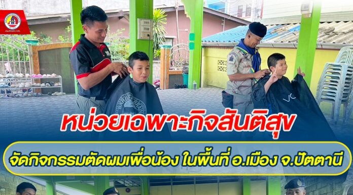 หน่วยเฉพาะกิจสันติสุข โดย ชุดสันติสุขที่ 103 ดำเนินกิจกรรมตัดผมเพื่อน้อง โดยการให้บริการตัดผมกับเด็กนักเรียน ณ ศูนย์การศึกษาอิสลามประจำมัสยิดซีอารุลอิสลาม ตำบลอาเนาะรู อำเภอเมือง จังหวัดปัตตานี เพื่อให้เด็กนักเรียนมีทรงผมสั้น สะอาดเรียบร้อย และยังเป็นการช่วยแบ่งเบาภาระลดค่าใช้จ่ายในครัวเรือนของนักเรียน และผู้ปกครอง และเป็นการสร้างความเชื่อมั่นให้กับพี่น้องประชาชนในพื้นที่ ภายใต้ “สังคมการอยู่ร่วมกันของพี่น้องประชาชน และเจ้าหน้าที่ทางภาครัฐ อย่างสันติสุข” นอกจากนี้หน่วยเฉพาะกิจสันติสุขยังได้เชิญชวนน้อง ๆ ร่วมแสดงสัญลักษณ์ WE ARE THAI (เราคือไทย) ซึ่งสร้างความสุข สร้างรอยยิ้ม ความประทับใจให้กับเยาวชนและประชาชนในพื้นที่อีกด้วย