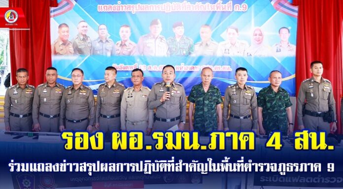 โดย พลตำรวจโท ปิยะวัฒน์ เฉลิมศรี ผู้บัญชาการตำรวจภูธรภาค 9 กล่าวว่า “ในวันนี้เป็นการแถลงผลการปฏิบัติที่สำคัญในพื้นที่ตำรวจภูธรภาค 9 โดยการบูรณาการร่วมกัน 3 ฝ่าย ระหว่างตำรวจ, ทหารและฝ่ายปกครอง ที่ผ่านมามีเหตุเกี่ยวกับอาชญากรรมหลายเหตุที่พี่น้องประชาชนคอยติดตามข่าวสารอยู่ในพื้นที่ตำรวจภูธรภาค 9...
