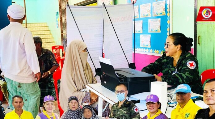 วันที่ 6 สิงหาคม 2567 เวลา 09.00 น. หน่วยเฉพาะกิจกรมทหารพรานที่ 43 นำกำลังพล ร่วมกับ ชุดแพทย์เคลื่อนที่จังหวัดชายแดนใต้ ผู้นำท้องที่ และผู้นำท้องถิ่น ดำเนินการออกหน่วยเคลื่อนที่เปิดให้บริการตรวจสุขภาพแก่ประชาชน ณ โรงเรียนบ้านปากาจิน่อ หมู่ที่ 6 บ้านปากาจิน่อ ตำบลดอนรัก อำเภอหนองจิก จังหวัดปัตตานี โดยทำการตรวจรักษาและดูแลรักษาสุขภาพที่จำเป็นให้กับประชาชนในลักษณะแบบผสมผสาน มีทั้งการบริการทางการแพทย์พื้นฐาน ตรวจวัดความแข็งแรงของร่างกาย วัดความดันโลหิต ตรวจรักษาทั่วไป แบบไม่มีค่าใช้จ่าย พร้อมให้เกี่ยวกับวิธีการดูแลรักษาสุขภาพที่ถูกต้อง นอกจากนี้มีการแนะนำให้ความรู้เรื่องเรื่องโรคอุบัติใหม่และโรคอุบัติซ้ำ โดยมีประชาชนเข้าร่วมใช้บริการ