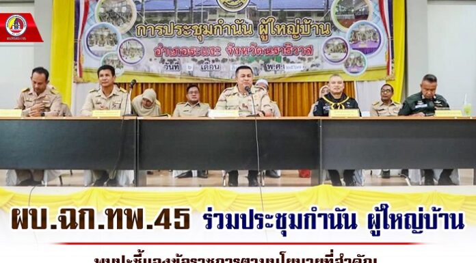ผบ.ฉก.ทพ.45 ร่วมประชุมกำนัน ผู้ใหญ่บ้าน พบปะชี้แจงข้อราชการตามนโยบายที่สำคัญ พร้อมทั้งรับฟังผลการดำเนินงานของส่วนราชการต่างๆในพื้นที่