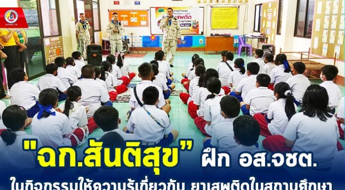 หน่วยเฉพาะกิจสันติสุข โดย ชุดสันติสุขที่ 504 ร่วมกับ ชุดทักษิณสัมพันธ์ที่ 551 และ ผู้เข้ารับมาฝึกเสริมสร้าง ผู้นำสมาชิกกองอาสารักษาดินแดน จังหวัดชายแดนใต้ อ.สะบ้าย้อย รุ่นที่ 11 ดำเนินกิจกรรมให้ความรู้เกี่ยวกับ ยาเสพติด ให้กับนักเรียนชั้นประถมศึกษาปีที่ 5 - 6 เพื่อสร้างภูมิคุ้มกันด้านยาเสพติดและให้ความรู้ ความเข้าใจเกี่ยวกับโทษและพิษภัยของยาเสพติด ณ โรงเรียนรุ่งภิณโญ หมู่ที่ 1 ตำบลสะบ้าย้อย อำเภอสะบ้าย้อย จังหวัดสงขลา