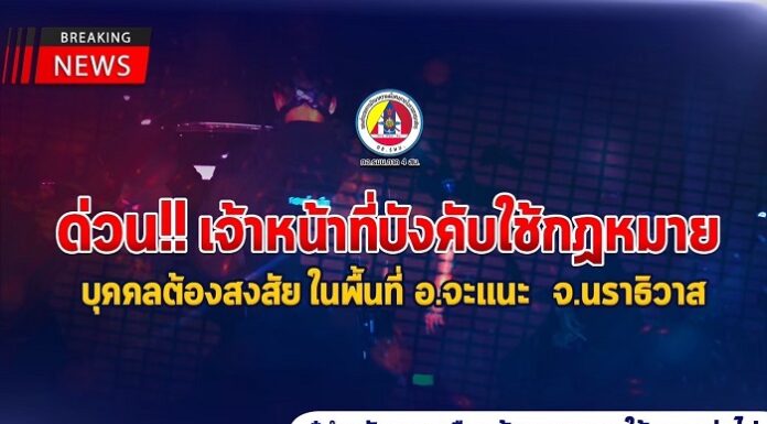 วันนี้ (8 สิงหาคม 2567) เวลา 06.00 น. หน่วยปฏิบัติการพิเศษร่วมประจำจังหวัดนราธิวาส ได้สนธิกำลัง 3 ฝ่าย เข้าบังคับใช้กฎหมายตรวจสอบบุคคลต้องสงสัย ในพื้นที่อำเภอจะแนะ จังหวัดนราธิวาส ปัจจุบันเจ้าหน้าที่อยู่ระหว่างดำเนินการ สำหรับความคืบหน้าจะรายงานให้ทราบต่อไป