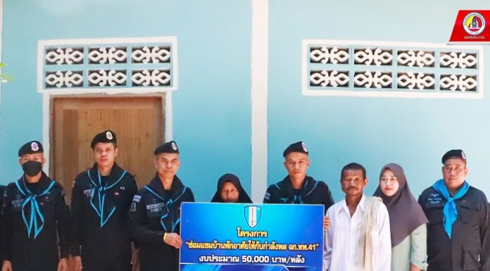สำหรับโครงการ “ซ่อมแซมบ้านพักอาศัยให้กับกำลังพลของหน่วย" ตามนโยบายของ ผู้บังคับหน่วยเฉพาะกิจกรมทหารพรานที่ 41 ได้มองเห็นถึงความเดือดร้อนของกำลังพลที่มีบ้านพักอาศัยที่ทรุดโทรม ภายในพื้นที่ 3 จังหวัดชายแดนภาคใต้ ดังนั้นจึงมีนโยบายซ่อมแซมบ้านพักอาศัยให้กับกำลังพล เพื่อเป็นการยกระดับคุณภาพชีวิตของกำลังพลให้ดียิ่งขึ้น ดังคำที่ว่า “เพราะเรา คือ ครอบครัวเดียวกัน”