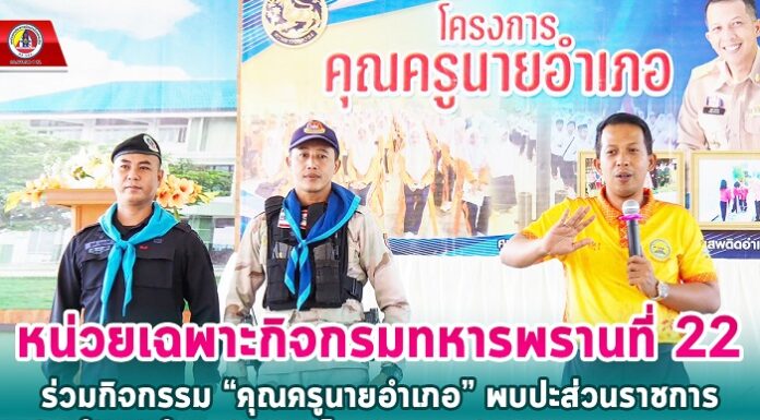 วันที่ 31 กรกฎาคม 2567 ที่โรงเรียนตลาดนัดปรีกี ตำบลกระโด อำเภอยะรัง จังหวัดปัตตานี พันเอก อุเทน จีนทองหลาง ผู้บังคับหน่วยเฉพาะกิจกรมทหารพรานที่ 22 ร่วมกิจกรรม "คุณครูนายอำเภอ" ซึ่งเป็นโครงการที่จัดขึ้นโดยฝ่ายปกครองในสถานศึกษา ประจำปี 2567 เพื่อให้ส่วนราชการได้พบปะให้กำลังใจครู และนักเรียน พร้อมทำกิจกรรมสอดแทรกข้อคิดแนะแนววิธีการเรียน เพื่อให้ประสบความสำเร็จในหน้าที่การงานในอนาคต ตลอดจนให้ความรู้เกี่ยวกับยาเสพติด ให้นักเรียนได้ตระหนักถึงโทษและพิษภัยของยาเสพติด และให้ความรู้ในเรื่องอื่น ๆ ทั้งนี้ หน่วยเฉพาะกิจกรมทหารพรานที่ 22 ได้ร่วมสนับสนุน และมอบทุนการศึกษาให้กับเด็กนักเรียนในโรงเรียนตลาดนัดปรีกีอีกด้วย โดยมี นายดนุช นาคสง่า นายอำเภอยะรัง เป็นประธาน