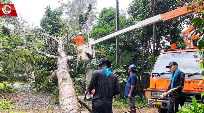 วันนี้ (26 พฤศจิกายน 2567) เวลา 08.30 น. ที่บ้านร่อน หมูที่ 2 ตำบลตันหยงมัส อำเภอระแงะ จังหวัดนราธิวาส ชุดปฏิบัติการกิจการพลเรืองกองร้อยทหารพราน 4503 หน่วยเฉพาะกิจกรมทหารพรานที่ 45 ร่วมกับ การไฟฟ้าอำเภอระแงะ และองค์การบริหารส่วนตำบลตันหยงมัส เร่งดำเนินการเข้าให้การช่วยเหลือประชาชน ตัดต้นไม้ใหญ่ล้มทับขวางเส้นทางจราจร เนื่องจากฝนตกหนักและมีพายุลมกระโชกแรง เพื่ออำนวยความสะดวกให้กับประชาชนที่สัญจรไปมา ไม่ลำบากในการใช้เส้นทางดังกล่าว