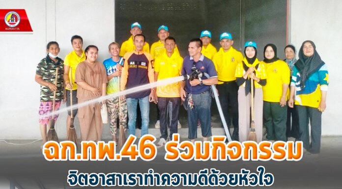 ฉก.ทพ.46 ร่วมกิจกรรม จิตอาสาเราทำความดีด้วยหัวใจ ปรับปรุงทำความสะอาดพื้นที่ศูนย์พักพิงชั่วคราวเมื่อเกิดอุทกภัย อ.รือเสาะ จ.นราธิวาส