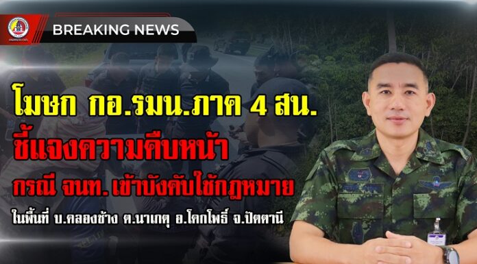 กอ.รมน.ภาค 4 สน. ชี้แจงความคืบหน้ากรณีเจ้าหน้าที่เข้าบังคับใช้กฎหมายในพื้นที่ บ้านคลองช้าง ตำบลนาเกตุ อำเภอโคกโพธิ์ จังหวัดปัตตานี
