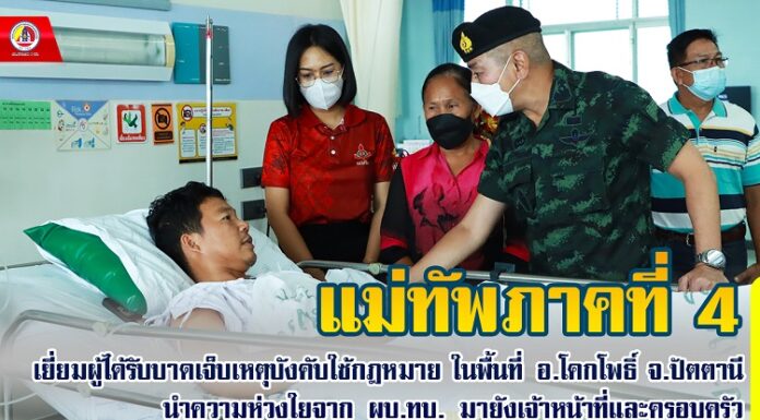 แม่ทัพภาคที่ 4 เยี่ยมผู้ได้รับบาดเจ็บเหตุบังคับใช้กฎหมาย ในพื้นที่ อ.โคกโพธิ์ จ.ปัตตานี นำความห่วงใยจาก ผบ.ทบ. มายังเจ้าหน้าที่และครอบครัว