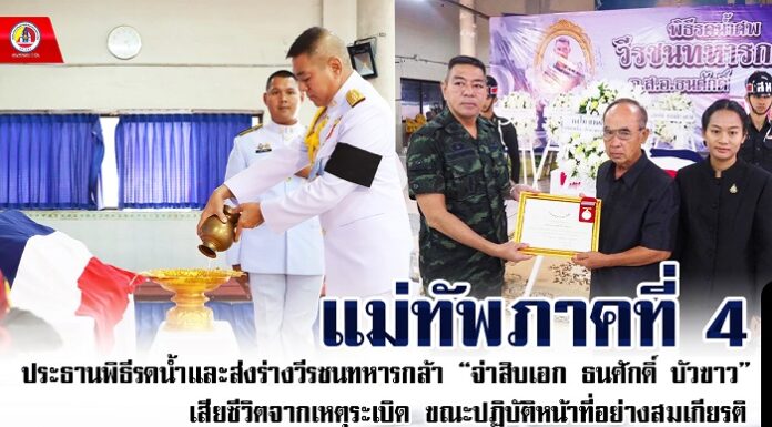 มทภ.4 ประธานพิธีรดน้ำและส่งร่างวีรชนทหารกล้า “จ่าสิบเอก ธนศักดิ์ บัวขาว“ เสียชีวิตจากเหตุระเบิด ขณะปฏิบัติหน้าที่อย่างสมเกียรติ