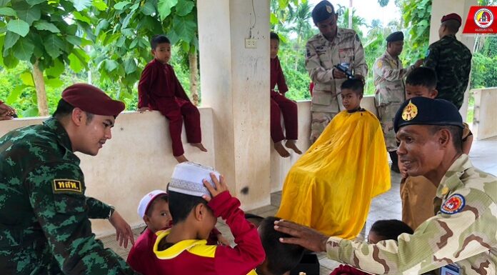 เมื่อวันที่ 28 กรกฎาคม 2567 หน่วยเฉพาะกิจสันติสุข โดย ชุดสันติสุขที่ 305 ร่วมกับ ชุดทักษิณสัมพันธ์ที่ 331 และผู้เข้ารับการฝึกเสริมสร้างผู้นำกองอาสารักษาดินแดน จังหวัดชายแดนภาคใต้ (อส.จชต.) รุ่นที่ 10 ดำเนินกิจกรรมจิตอาสาพัฒนาสถานศึกษา เพื่อปรับปรุงภูมิทัศน์ ทำความสะอาดเขตสุขาภิบาล ภายในสถานศึกษาให้น่าอยู่ สำหรับการดำเนินกิจกรรมในครั้งนี้ได้มีเก็บขยะ กวาดขยะ และทำความสะอาดรอบบริเวณห้องเรียนให้สะอาดเรียบร้อย เพื่อภูมิทัศน์ที่ดีภายในสถานศึกษา พร้อมทั้งให้บริการตัดผมฟรีให้กับนักเรียน เพื่อให้เด็กนักเรียนมีทรงผมสั้น สะอาดเรียบร้อย และยังเป็นการช่วยแบ่งเบาภาระลดค่าใช้จ่ายในครัวเรือนของนักเรียน และผู้ปกครองด้วย ณ ศูนย์การศึกษาอิสลามประจำมัสยิด (ตาดีกา) ยาแมะอัล-ตักวา บ้านปาตาบูแม หมู่ที่ 3 ตำบลสะเอะ อำเภอกรงปินัง จังหวัดยะลา