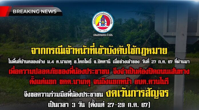 จากกรณีเจ้าหน้าที่เข้าบังคับใช้กฎหมาย ในพื้นที่บ้านคลองช้าง ม.4 ต.นาเกตุ อ.โคกโพธิ์ จ.ปัตตานี เมื่อช่วงเช้าของวันที่ 27 ก.ค. 67 ที่ผ่านมา