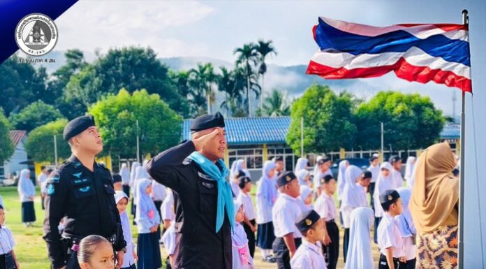 ทหารพราน 49 ร่วมกิจกรรมเสาธง 5 นาที เสริมสร้างความรักชาติ ศาสนา พระมหากษัตริย์ ให้กับนักเรียน