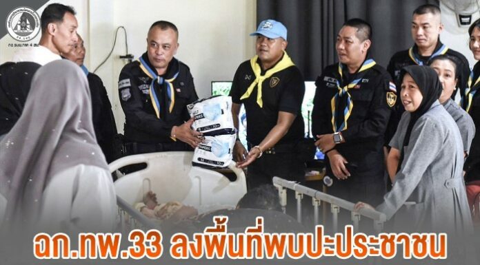 หน่วยเฉพาะกิจกรมทหารพรานที่ 33 จัดกำลังพลชุดหมอเดินเท้า ลงพื้นที่บ้านตะบิงติงงี ตำบลตลิ่งชัน อำเภอบันนังสตา จังหวัดยะลา เพื่อพบปะ เยี่ยมเยียนประชาชน พร้อมทั้งได้มอบยาสามัญประจำบ้าน และเครื่องอุปโภค–บริโภคที่จำเป็นต่อการดำรงชีวิตให้กับประชาชนผู้ยากไร้ และผู้ป่วยติดเตียงในชุมชน เพื่อเป็นการบรรเทาความเดือดร้อน และสร้างขวัญกำลังใจให้กับประชาชนในพื้นที่