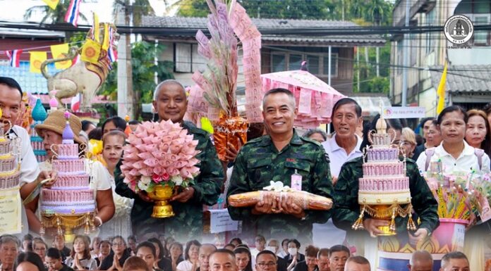 กอ.รมน.ภาค 4 สน. และพุทธศาสนิกชน ร่วมทำบุญทอดกฐินสามัคคี สร้างฉัตรหลวงพ่อโตชำปอกง วัดราษฎร์สโมสร