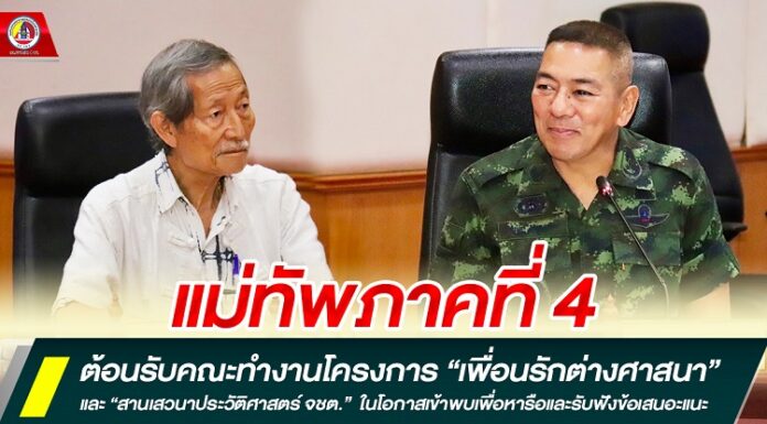 มทภ.4 ต้อนรับคณะทำงานโครงการ ”เพื่อนรักต่างศาสนา” และ “สานเสวนาประวัติศาสตร์ จชต.“ ในโอกาสเข้าพบเพื่อหารือและรับฟังข้อเสนอะแนะต่าง ๆ