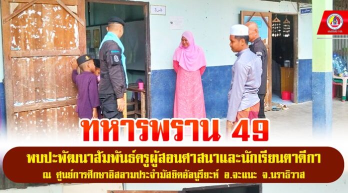 ทหารพราน 49 พบปะพัฒนาสัมพันธ์ครูผู้สอนศาสนาและนักเรียนตาดีกา ณ ศูนย์การศึกษาอิสลามประจำมัสยิดอัลนูรียะห์ อ.จะแนะ จ.นราธิวาส