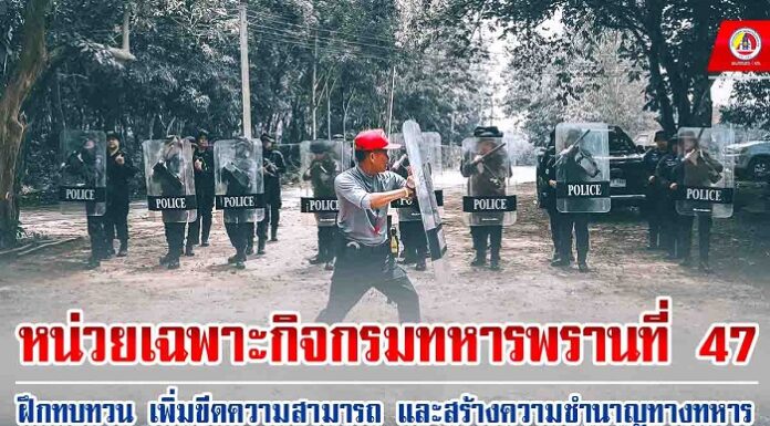 เมื่อวันที่ 19 พฤษภาคม 2567 ที่ ฐานปฏิบัติการ กองร้อยทหารพรานที่ 4707 อำเภอยะหา จังหวัดยะลา หน่วยเฉพาะกิจกรมทหารพรานที่ 47 ดำเนินการฝึกทบทวนความรู้ให้กับกำลังพล หมวดทหารพรานหญิง 47 เกี่ยวกับการควบคุมฝูงชน โดยใช้ โล่-กระบอง เพื่อเป็นการเพิ่มพูนความรู้ สร้างความเข้าใจ เพิ่มขีดความสามารถ และสร้างความชำนาญทางทหาร ให้กับทหารพรานหญิง รวมทั้งสามารถนำไปปฏิบัติได้อย่างถูกต้อง และปลอดภัย ทั้งในรูปแบบการฝึก และการปฏิบัติงานจริง นำไปสู่การแก้ปัญหาในพื้นที่ได้อย่างมีประสิทธิภาพต่อไป