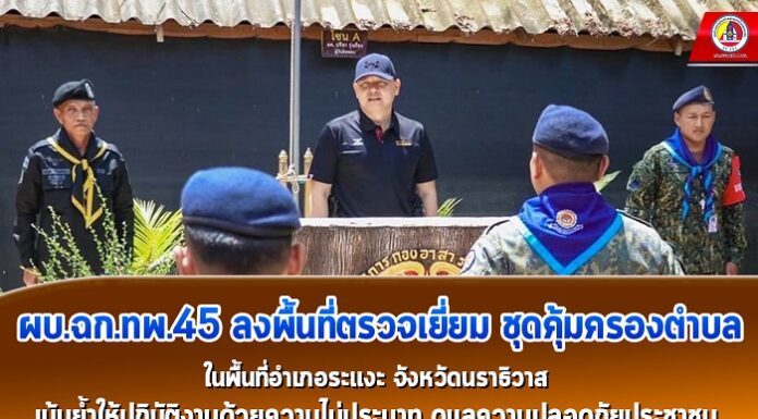 ผบ.ฉก.ทพ.45 ลงพื้นที่ตรวจเยี่ยม ชุดคุ้มครองตำบลในพื้นที่ อำเภอระแงะ จังหวัดนราธิวาส เน้นย้ำให้ปฏิบัติงานด้วยความไม่ประมาท ดูแลความปลอดภัยประชาชน