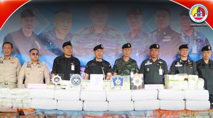 กอ.รมน.ภาค 4 สน. และ ตร.ภาค 9 แถลงข่าวบูรณาการร่วม จับกุมเครือข่ายนักค้ายาเสพติดรายสำคัญ 4 เครือข่าย 10 คน ไอซ์กว่า 600 กก. ยาเสพติดล้านเม็ดพร้อมอาวุธปืน 6 กระบอก รวมมูลค่าเกือบ 4 ล้านบาท