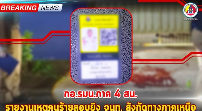 กอ.รมน.ภาค 4 สน. รายงานเหตุคนร้ายลอบยิง จนท. จากภาคเหนือ ในระหว่างลากลับบ้าน เสียชีวิต ในพื้นที่ อ.ปะนาเระ จ.ปัตตานี