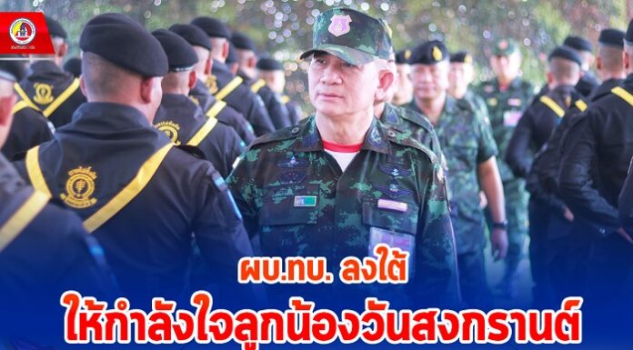 ผบ.ทบ. ลงให้กำลังใจลูกน้องวันสงกรานต์ ย้ำเตือนกำลังพลต้องดูแลตนเอง ให้มีสุขภาพร่างกายแข็งแรง และจิตใจที่เข้มแข็ง ปฏิบัติทุกภารกิจได้อย่างมีประสิทธิภาพ