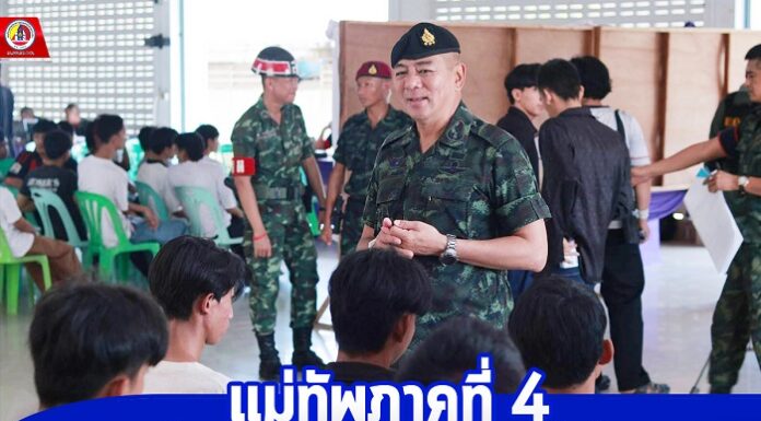 แม่ทัพภาคที่ 4 ตรวจเยี่ยมหน่วยตรวจเลือกทหารฯ “ย้ำทุกขั้นตอนต้องโปร่งใส และเป็นไปตามระเบียบ พร้อมเชิญชวนชายไทยสมัครใจเป็นทหาร“