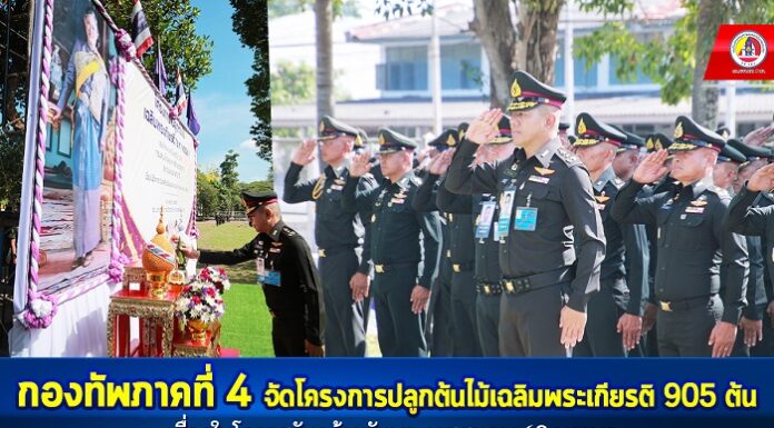 กองทัพภาคที่ 4 จัดโครงการปลูกต้นไม้เฉลิมพระเกียรติ 905 ต้น เนื่องในโอกาสวันคล้ายวันพระราชสมภพ 69 พรรษา สมเด็จพระกนิษฐาธิราชเจ้า กรมสมเด็จพระเทพรัตนราชสุดาฯ สยามบรมราชกุมารี