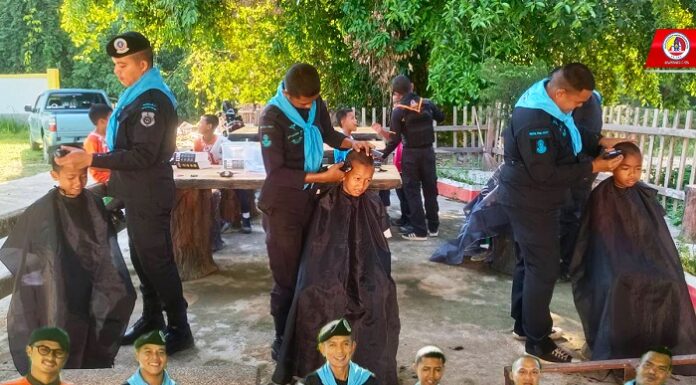 ”ทหารพราน 49” ตัดผมให้กับนักเรียนตามโครงการเกศาสานใจ ในพื้นที่ อ.ศรีสาคร จ.นราธิวาส