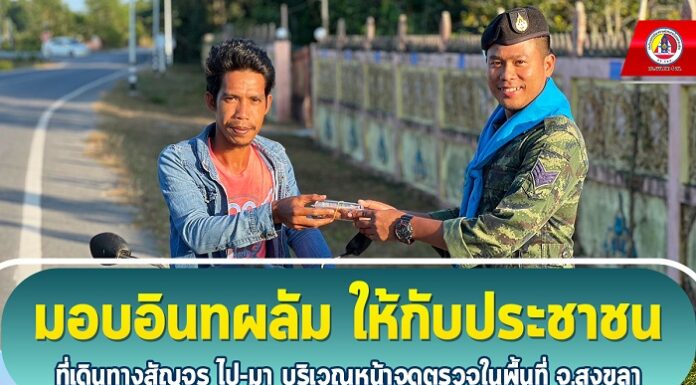 มอบอินทผลัมพร้อมน้ำดื่มให้กับประชาชนที่เดินทางสัญจรไป-มาบริเวณหน้าจุดตรวจในพื้นที่ จ.สงขลา